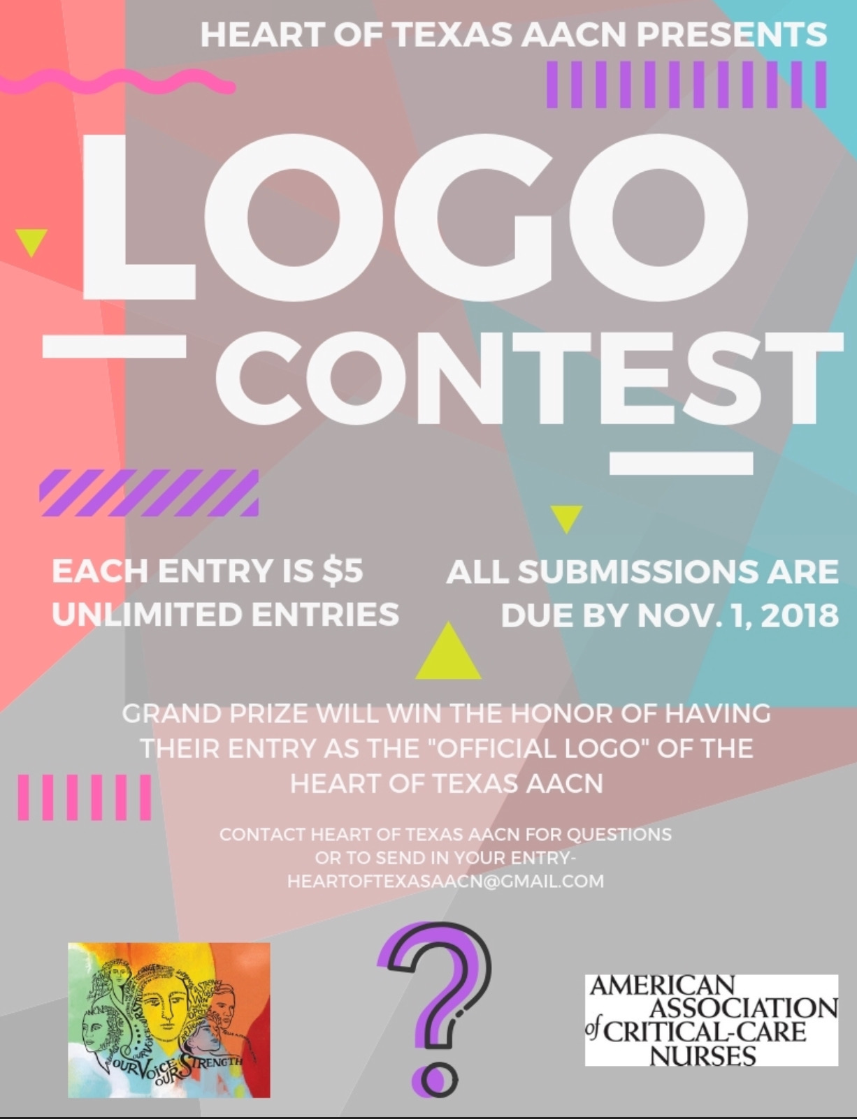 Make history by entering the Heart of Texas AACN Logo Contest!! Your logo could be the "official logo" of the Heart of Texas AACN from now on!! Each entry is $5 and all entries are due by November 1, 2018! Email all entries to heartoftexasaacn@gmail.com. We can't wait to see what you guys come up with!!